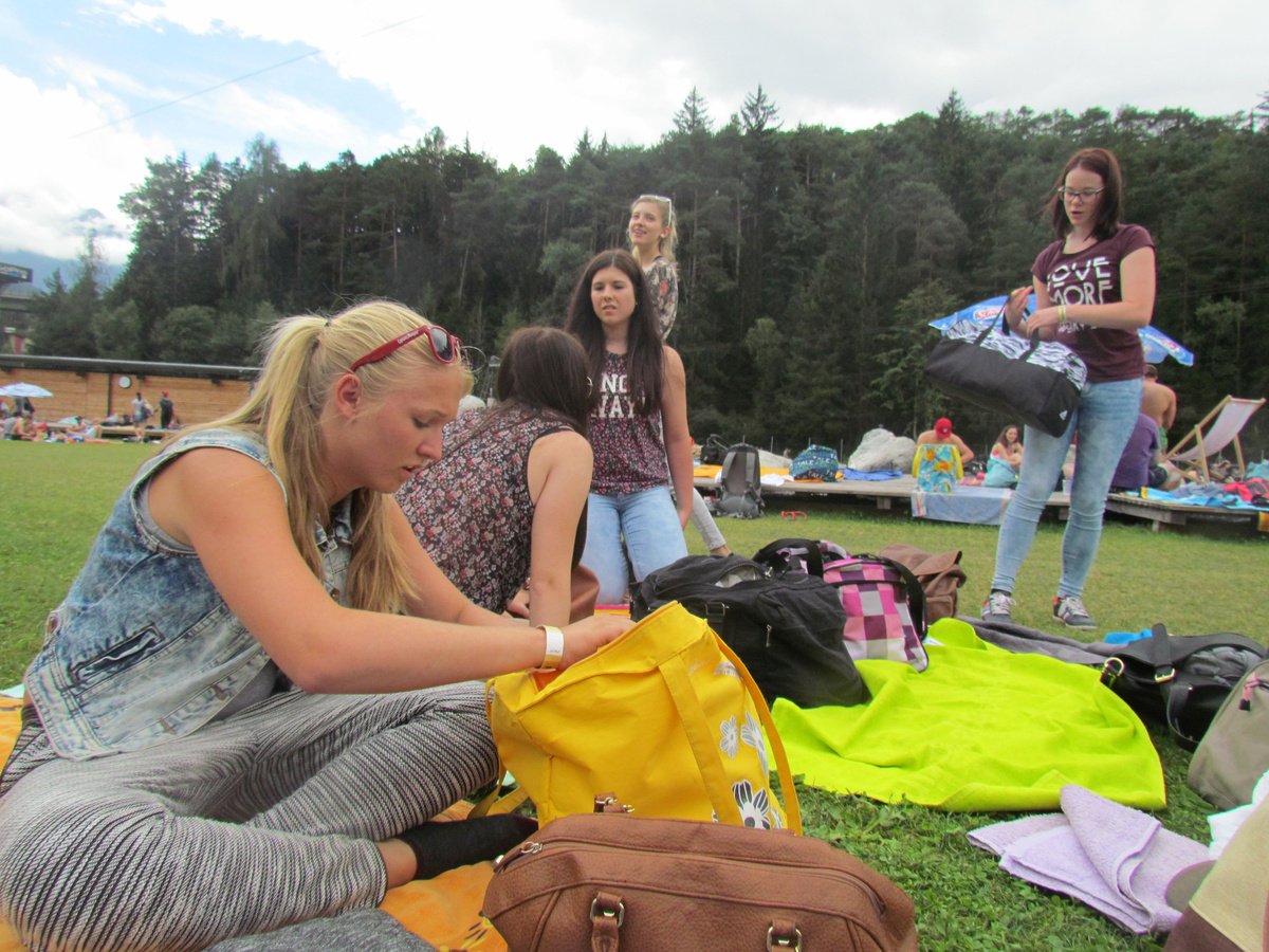 Als wir nach unendlich langer Busfahrt endlich in Tirol angekommen sind, stürmten wir trotz bescheideneren Temperaturen die Attraktionen der AREA 47! Für Adrenalinjunkies war es das reine Paradies, wär es eher ruhiger mochte, konnte einfach so im Wasser plantschen oder die verschiedenen Rutschen ausprobieren! Leider fing es am Nachmittag zu regnen an und wir mussten früher als gewohnt unser Quartier in Inzing beziehen.